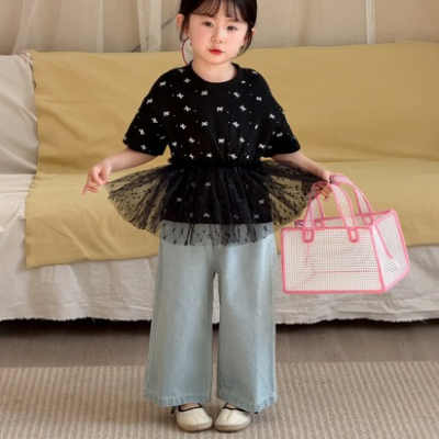 # 리본레이스티+데님바지SET